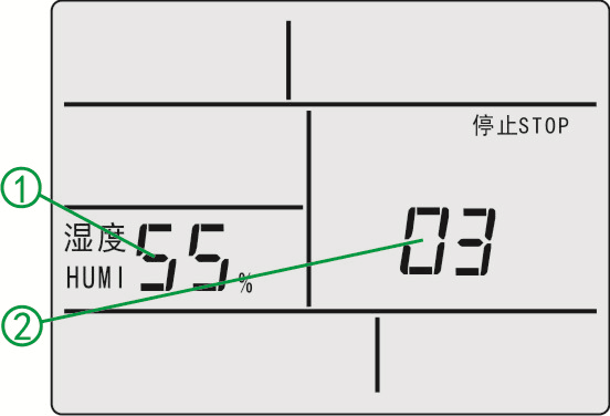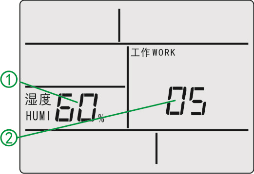 ⑶濕度繼電器輸出指示:當濕度繼電器輸出,“加濕”顯示“加濕ADHU”。